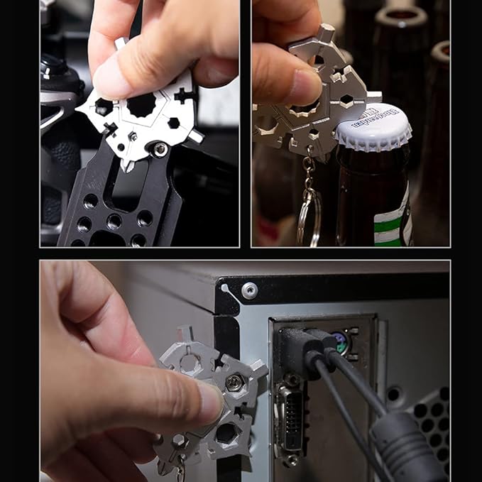 - VERSATILE:Each tool has more than 23 uses, can be used to open the beer bottle, turn the screw, fix snowboarding , bicycle, toys, and more.Is the military enthusiasts and the outdoor camping, boarding, adventure, rescue, and everything that might be used.