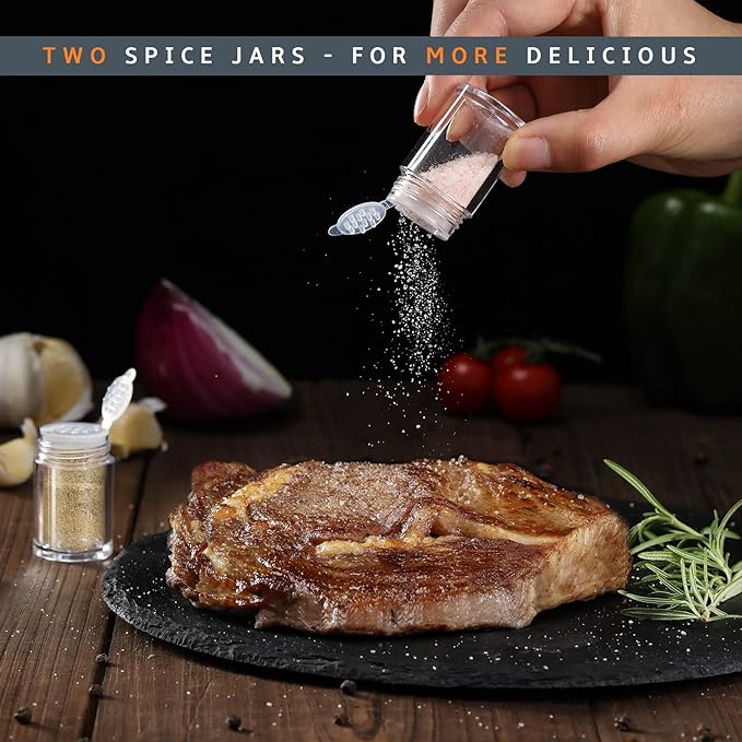 - TWO TRANSPARENT SALT-PEPPER JARS: Perfect size for lunch boxes, camping, picnics or traveling. Very easy to see what spices inside by the transparent wall and use for salt, spice and flavor your food at anywhere.