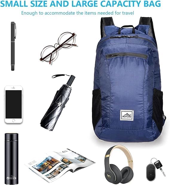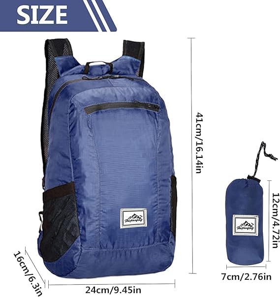 20L Ultra Lightweight Foldable Backpack Small Hiking Rucksack Ultralight Water Resistant Travel Packable Daypack for Men Women for Outdoor Sport Travelling Walking Hiking Camping Biking (Navy blue B)