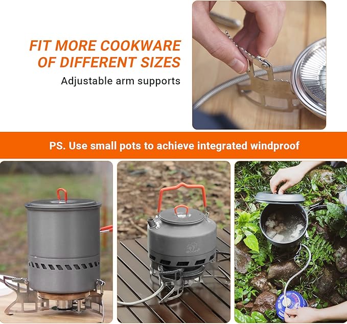 - Resilience & Stability: Thanks to the thickened stainless-steel frame and non-slip rubber floor mat, the 3800W camping stove can stably support cookware up to 5KG. With the horizontal air inlet tube for a lower center of gravity, more stable hold and less risk of the pan tipping over. The bracket is adjustable, suitable for different sizes of pots and pans.