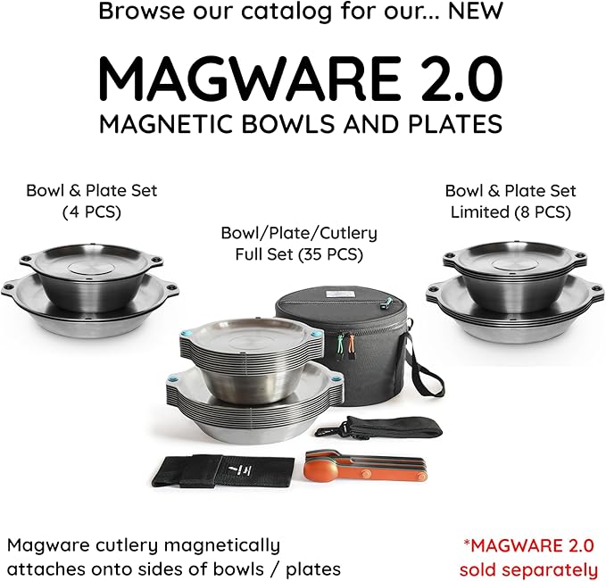 - ✔ CONNECT MAGNETICALLY: Embedded magnets allow MAGWARE silverware sets to connect tightly together for secure packing and organized storage. This allows you to join as many camping cutlery kits together as you wish. Take as many sets as needed for the family in one tidy bundle. No more hunting through drawers for that one knife, fork, or spoon that went missing from your three-piece kit.