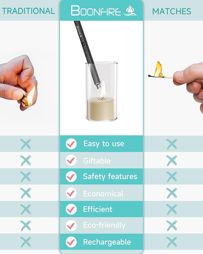 - 【WHAT YOU GET】 A candle lighter, a USB cable and a manual. Never put electric lighter under the sun and splashing water. Just keep it in a clean and dry corner in your kitchen. If you have any issues with your lighter, please do not hesitate to contact us.