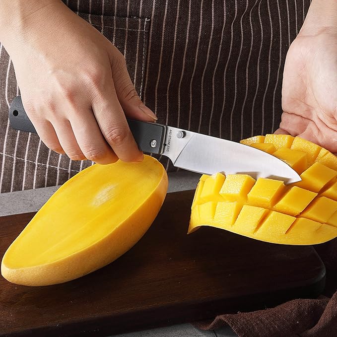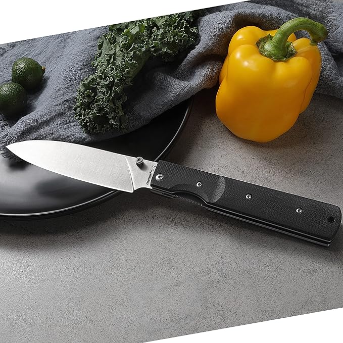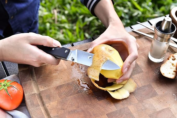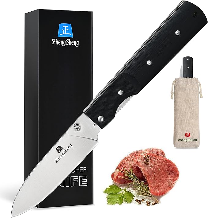 - FUNCTIONAL: Folding and comfortable small chef's knife, perfect for outdoor cookouts, barbecues, fishing, hiking, and even cooking delicious food at home. This chef knife can be folded and even put into the pocket for easy storage and carrying.