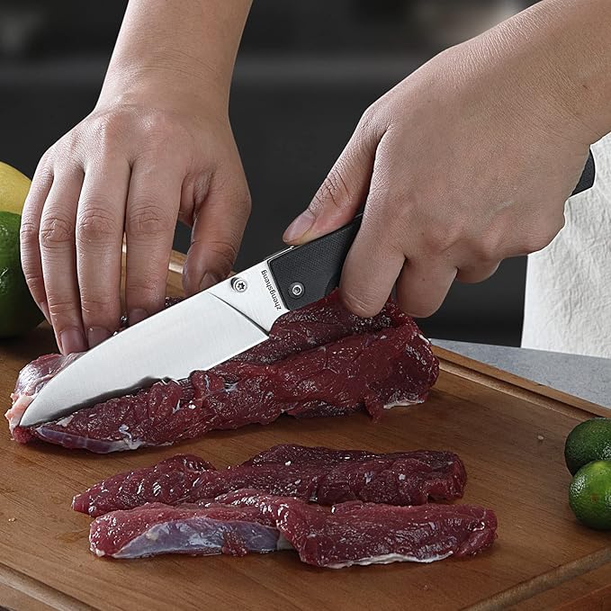 - ULTRA-SHARP: High quality 440A Stainless Steel very durable and sharp blade, suitable for outdoor camping and kitchen cooking. excellent for meats, vegetables, fruit and more. Cutting like a master chef will bring you more enjoy in the kitchen or outdoor activities.