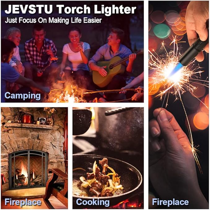 - 🔥【Jet Lighter & Windproof Adjustable Flame】JEVSTU butane lighter's flame regulating valve is located at the bottom of the lighter. After lifting the recessed handle, you can easily adjust the flame size without any tools. From weak to strong flame, it is very convenient. The torch jet flame is concentrated in the steady ceramic nozzle, Maximum temperature up to 2800°F, it can easily against outdoor wind.