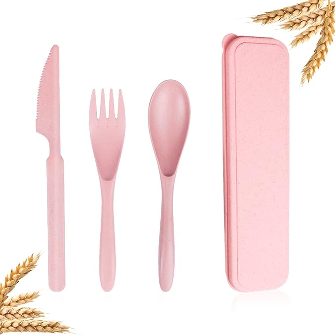 - YOU WILL GET - 1 set portable utensils set with case in pink color. The cutlery case includes one fork,one spoon and one knife. It is enough for daily use. Note: If there is a problem, please contact us, we provide lifelong replacement service for you.