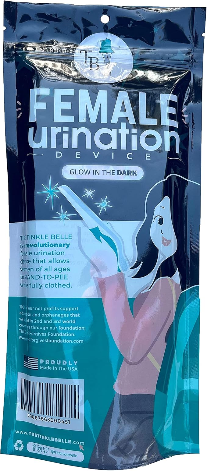 Glow in The Dark Tinkle Belle Female Urination Device | Portable Urinal with Case! Stand to Pee While Staying Fully Clothed! Easy, Reusable for Hiking/Camping/Travel/Concerts/Festivals/Dirty Toilets