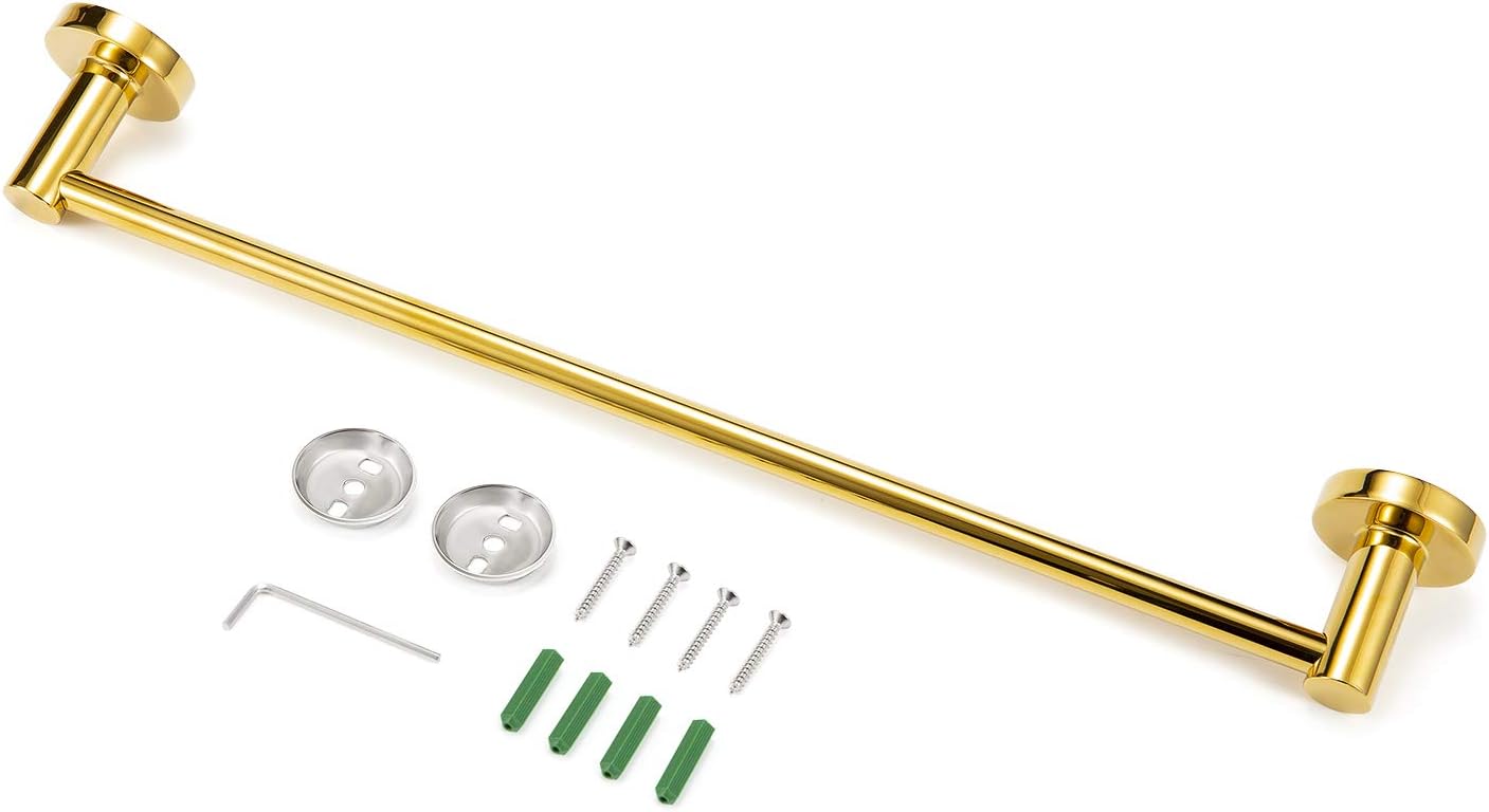 JiePai Bath Towel Bar Gold, 11.8 Inch Stainless Steel Towel Rack Bathroom Towel Holder Wall Mount Kitchen Dish Cloth Hanger (Gold, 11.8 Inch)