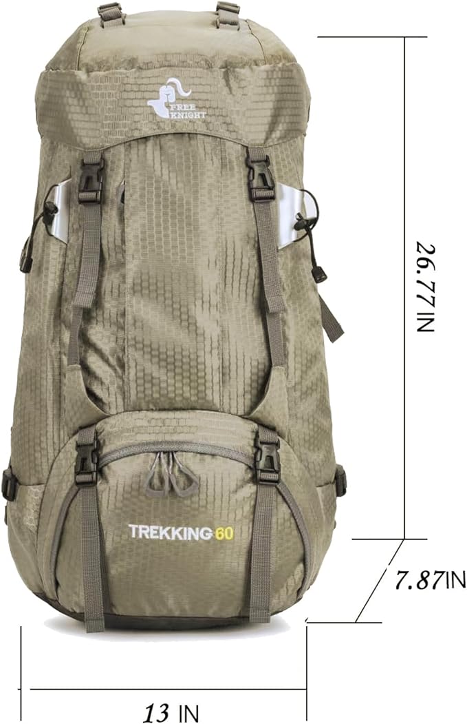 • Lightweight outdoor backpack, ultralight, only 2.1 lbs for a large 60L capacity, reducing the weight of the backpack so you can carry more other items. The maximum load bearing capacity is 33 lb. Unfolded size: 68 x 33 x 20 cm / 26.77 x 13 x 7.87 inches.