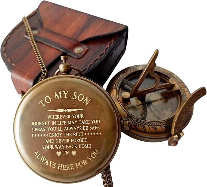 - Brass compass Engraved With A Special Quote Saying "To my son: wherever your journey in life may take you, I pray you’ll always be safe. Enjoy the ride and never forget your way back home. I’m always here for you." What’s more unique than a personalized gift? Saying never comes off so the personalized gift will be appreciated by your son for many years to come.