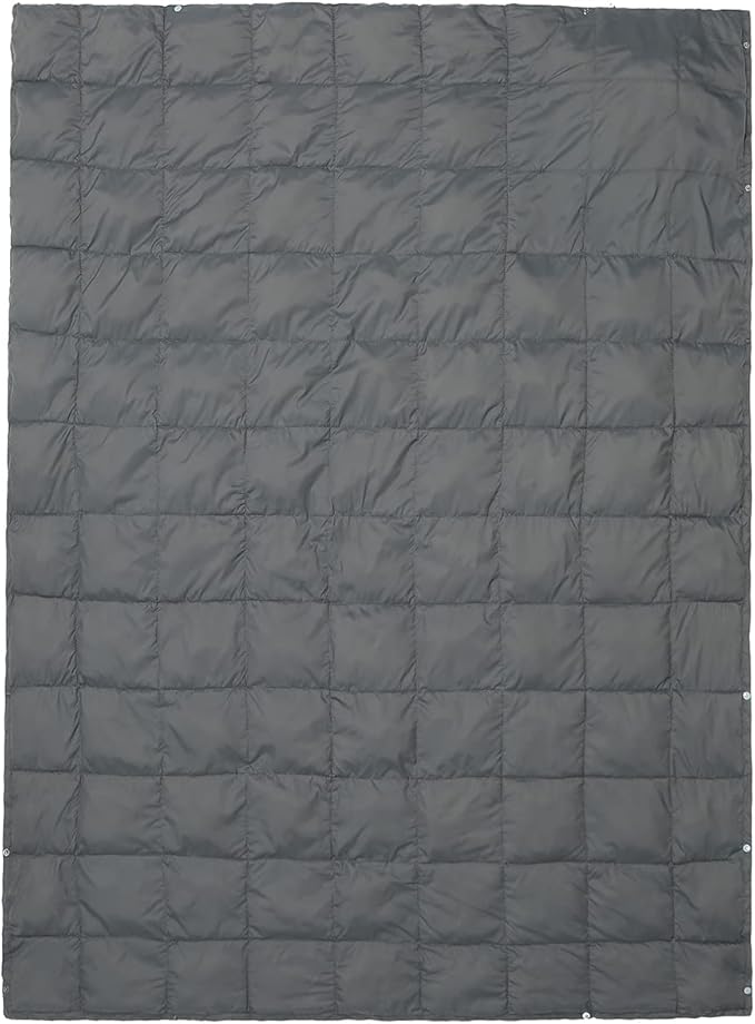 - Comfortable & Warm: 20D ripstop nylon shell blocks out wind and cold, high-quality fiber filler that has the feel of authentic down without the feathers, poking or allergy. In cold weather or during warmer seasons, our camping blanket ultralight is a great addition to any sleep system
