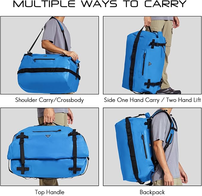 Haimont Large Waterproof Duffel Backpack Roll-Top Heavy Duty Dry Duffle Bag for Boating, Travel, Motorcycle, Kayaking, Camping, 60L
