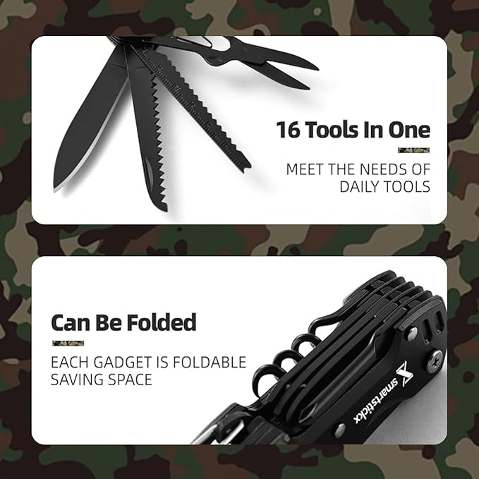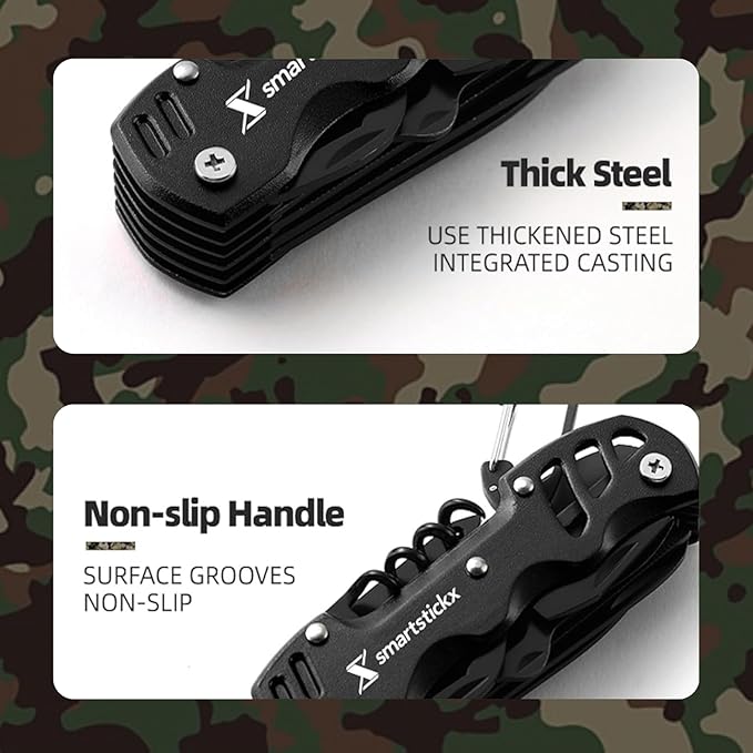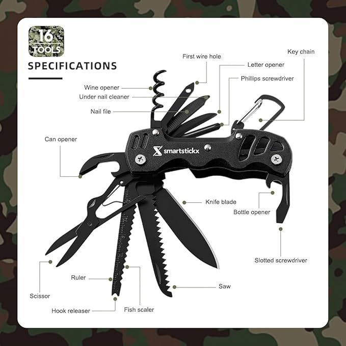 - PREMIUM MATERIALS: Crafted with high-quality stainless steel, the SmartstickX 16 in 1 Multi Tool Pocket Knife is built for durability and longevity, ensuring it can withstand the rigors of outdoor adventures.
