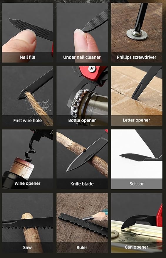 - EASY TO CARRY: Our multi-tool features a key chain for easy carry, this Swiss Army Knife is always at your fingertips and compact design that easily fits in a pocket or sock, whether you're in the wilderness, camping, hiking, or simply need a reliable tool at home. Whether in life or work, it is a powerful and practical multitool.