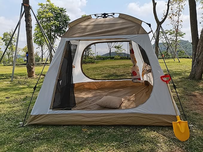 This camping tent was super easy to set up and kept us dry even during heavy rain. Spacious enough for the whole family!