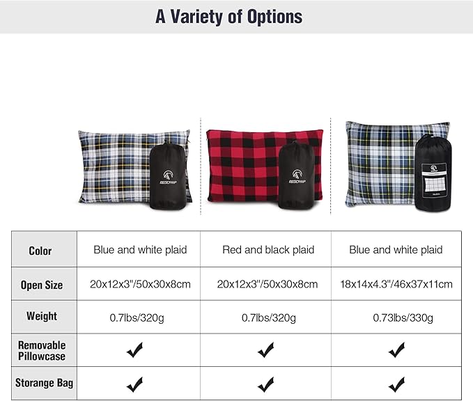 - ▲MATCH: This travel lightweight pillow cases match all Redcamp sleeping bag and back pad.the pillow open size is 18”*14”/46*37cm