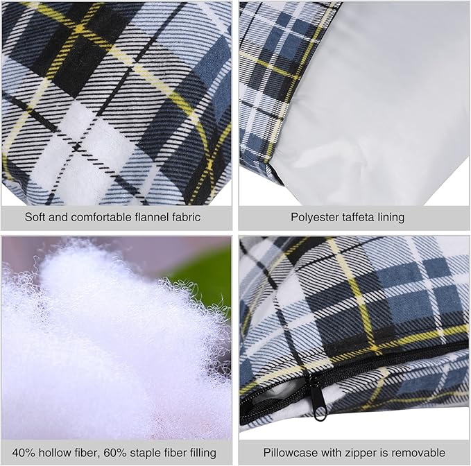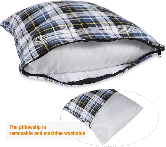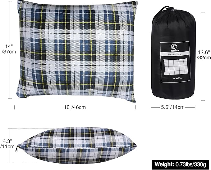 REDCAMP Small Camping Pillow Lightweight and Compressible, Flannel Travel Pillow with Removable Pillow Cover (Square Blue and Grey)
