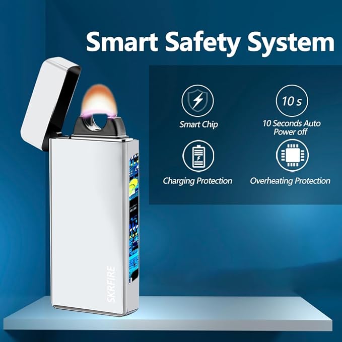 SKRFIRE Electric Lighters Candle Lighter Rechargeable USB Lighter Plasma Arc Big Flame Lighter with LED Battery Indication for Ignition, Candle, Incense, BBQ (Silver)