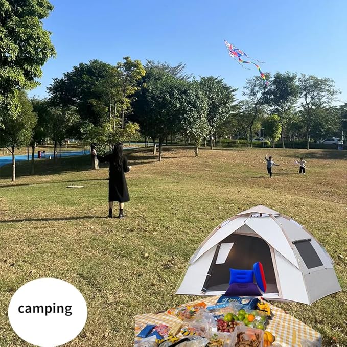 This camping tent was super easy to set up and kept us dry even during heavy rain. Spacious enough for the whole family!