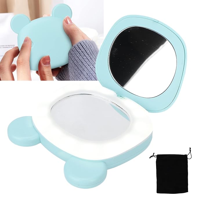 Hand Warmers Rechargeable, Electric Hand Warmer, Small Compact USB Handwarmer with Pocket Mirror Light Portable Hands Heater for Men and Women for Home Travel Use Camping Fishing Skiing(Blue Bear)