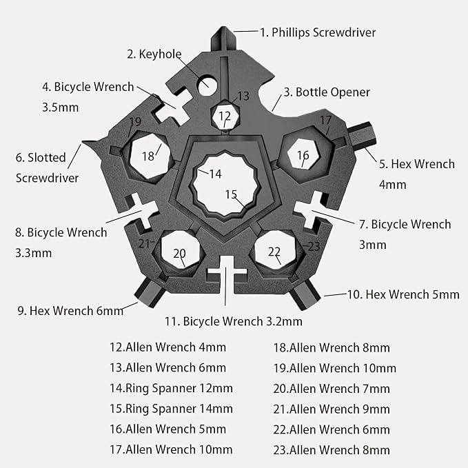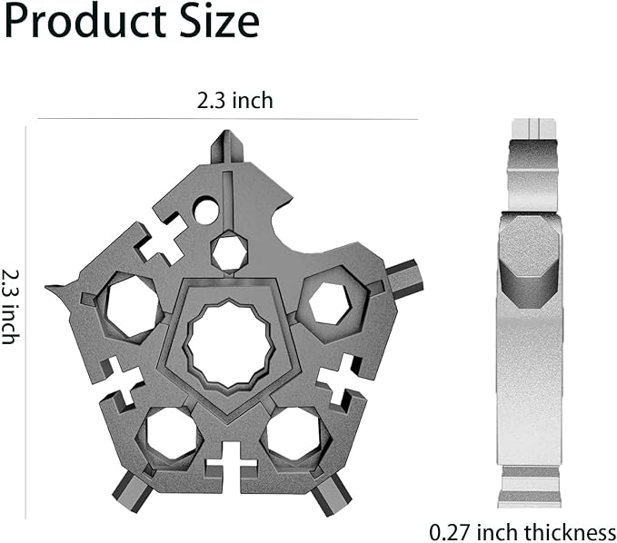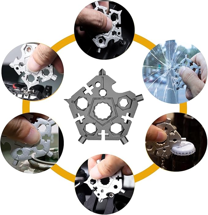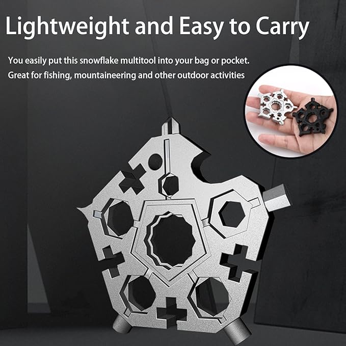 - [Easy to Carry] - The portable snowflake mini tool has only 2.3ounces and is just 2.28 inches diameter. The portable size allows you easily put this snowflake multitool into your bag or pocket and carry it anywhere.It comes with a key ring.Great for cycling, mountaineering and other outdoor activities.
