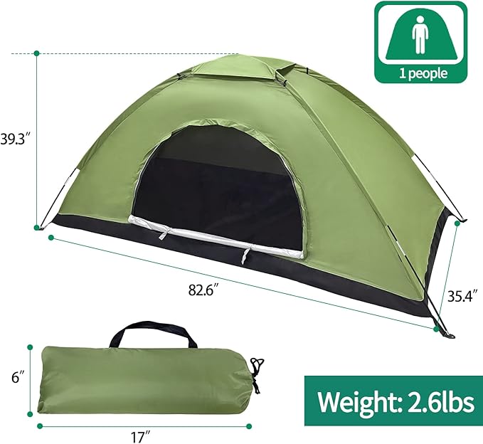 - Single tent weighs approx. 2.6lbs. Easy to install and carry. Can fit into your backpack.