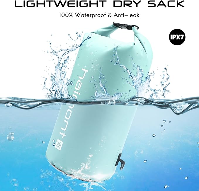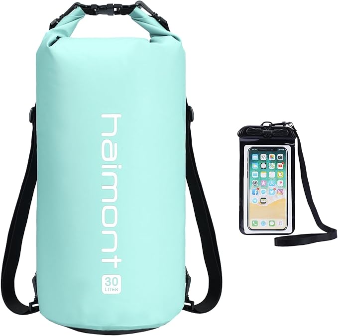 Haimont Waterproof Dry Bag Floating Dry Sack Roll Top Drybag Backpack for Kayaking, Rafting, Boating, Fishing with IPX8 Waterproof Phone Case, Aqua Green, 30L