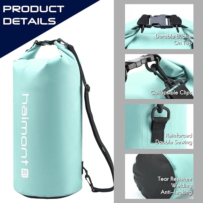 - Versatility: Haimont dry bag can float on water after being rolled and buckled, so you can track your gear easily, no more worrying about your items getting wet. Suitable for boating, kayaking, paddling, sailing, canoeing, surfing, or having fun on the beach