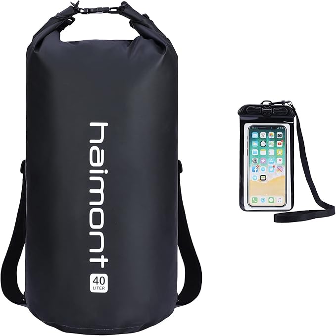 Haimont Waterproof Dry Bag Floating Dry Sack Roll Top Drybag Backpack for Kayaking, Rafting, Boating, Fishing with IPX8 Waterproof Phone Case, Black, 40L