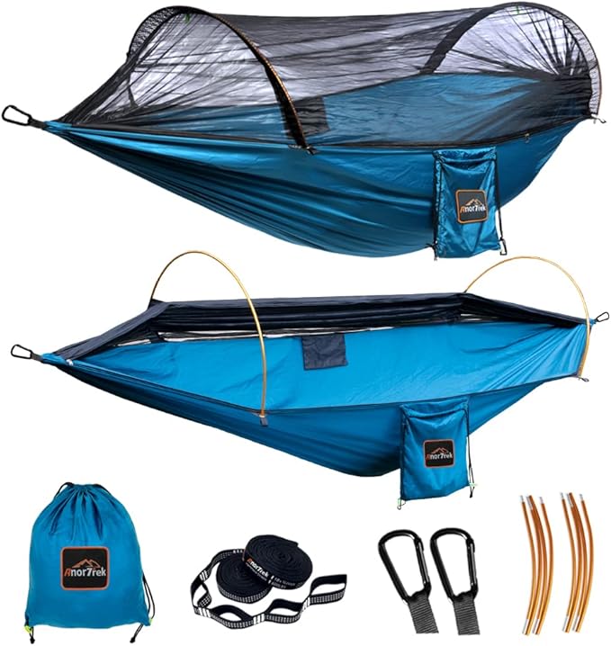• [Real anti-rollover design] - Fully open the zippers, push the mosquito net to the other side of the hammock poles, then you can use the hammock without mosquito net. The sturdy hammock poles can effectively prevent you from falling off the hammock. The hammock size is 114" * 55", weight is 2.3 pounds.