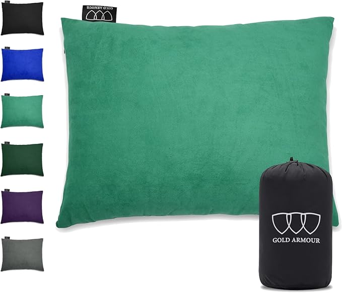 Gold Armour Camping Pillow Memory Foam - Compact Compressible Backpacking, Hammock, and Travel Pillows for Kids and Adults - Essential Outdoor & Camping Gear (Medium 14x18in, Seafoam)