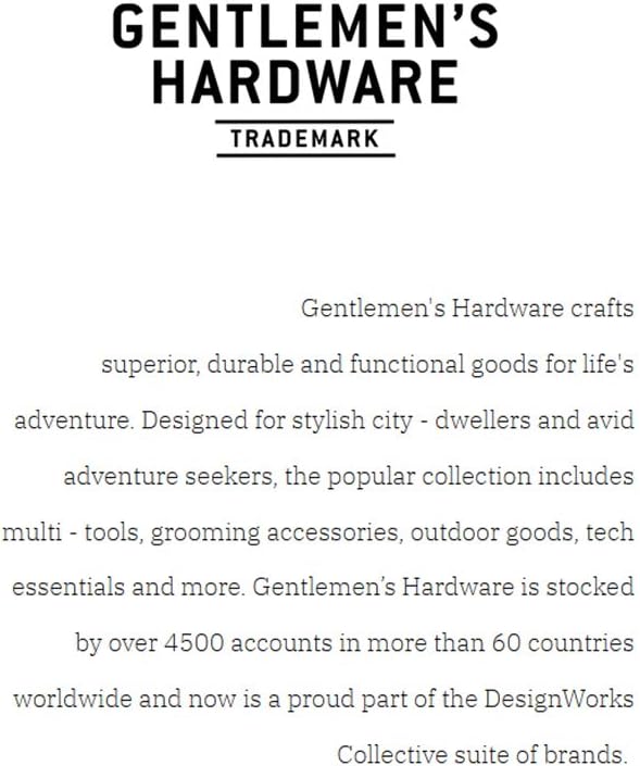 - GET IN TOUCH WITH YOUR OUTDOOR SELF: Gentlemen's Hardware products are ideal for just about every outdoor activity. They're made to keep you prepared in the outdoor elements, as well as around the house.