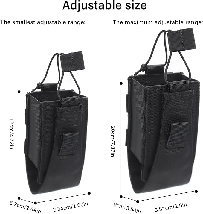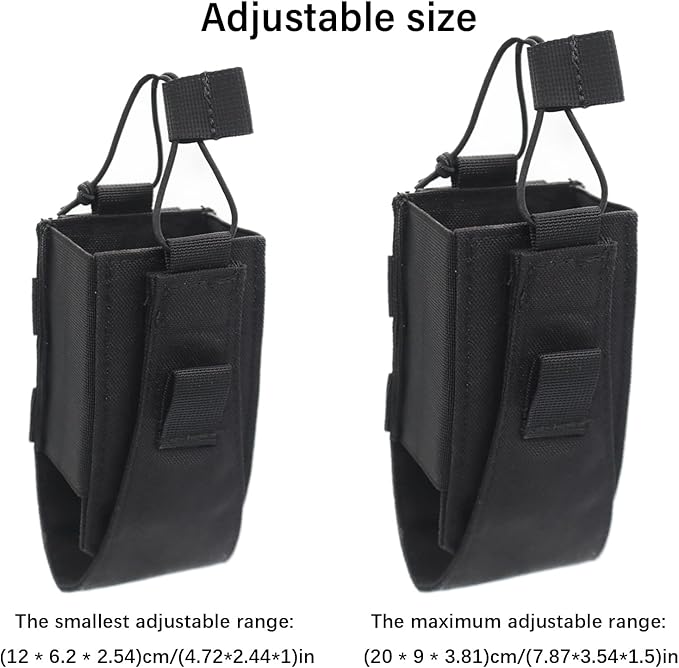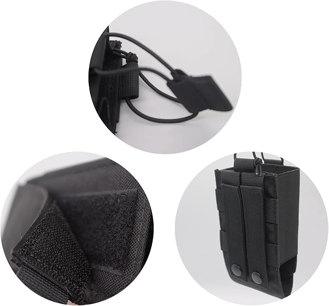 - 🔫Adjustable design: The radio can be securely fastened to the radio holder with an adjustable elastic cord and hook & loop, the detachable while hook & loop inside the bag can be adjusted to tighten the radio at different height, protect the radio from rubbing and prevent the radio from falling.
