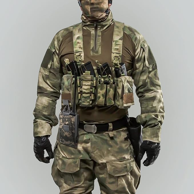 - 🔫Molle system: Molle radio pouch can be easily connected to any molle-compatible tactical vest, backpack, belt and other equipment.⚠Note: The American flag patch is pasted on the inside of the radio pouch and can be peeled off and pasted on the outside when using it.