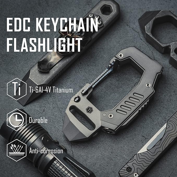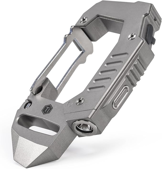 KeyUnity KF02 Titanium Multitool Carabiner Clip, 7 in 1 Multifunctional Keychain Flashlight for Camping, Hiking & Outdoor Activities
