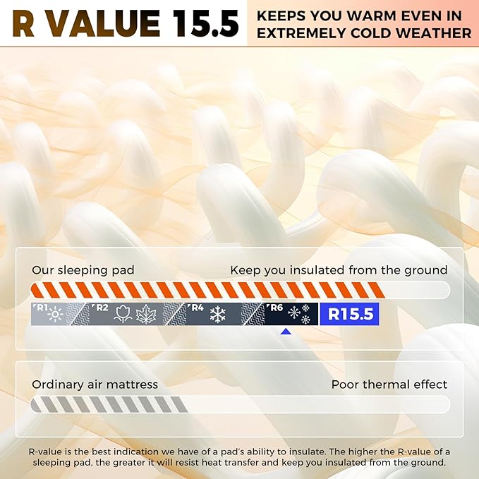- 【Keep You Warm Anywhere-R Value 11】The double foam sleeping pad features 5.9 inch thick high rebound foam, high R-Value serves you 4 season warm. Offer optimal comfort and warmth your body needs and ensures you won't feel jagged rocks or uneven ground below.Camping nights are no longer sleepless. Like sleeping in my own bed!