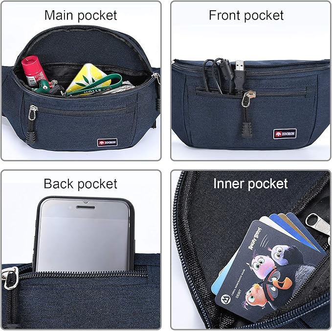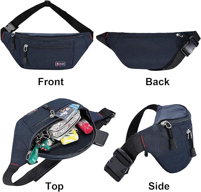 - 【AMPLE ROOM, KEEP ORGANIZED】The fanny pack is well constructed with 4 separate zippered pockets of different sizes perfect for most people who want to be hands free to carry the most needed items, include phone, passport, keys, ID and other small items. Provides spacious storage and help keep you organized.