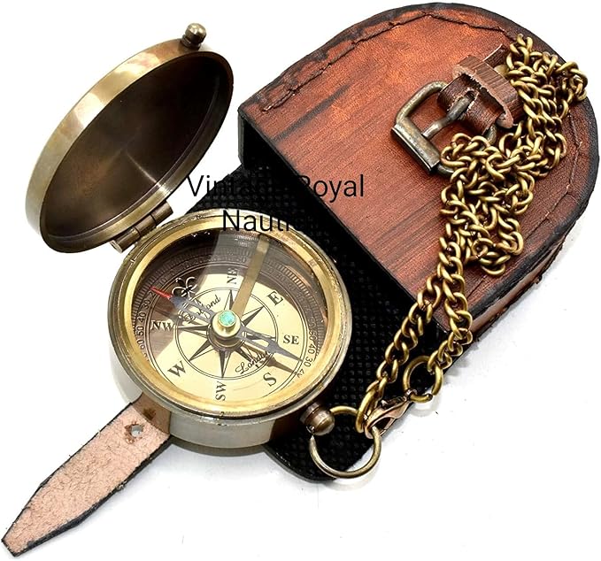 - ✔️★ UTILITY AND DURABILITY : Brass compass with chain and Leather Storage Case Each compass is individually crafted and carefully packaged. Its antique finish enhances your home décor, study room decoration, office desks and more. It gives a classy and elegant touch to your space. It is made of premium quality solid brass that makes it long lasting for years.