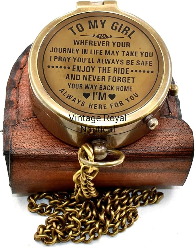 - ✔️★ PREMIUM QUALITY COMPASS: Premium quality handcrafted brass compass and leather case. Engraved Brass compass to My Son Compass/Father to Son Gifts/Mother to Son Gift/To My Brother / To My Sister/ Inspirational Gift. The high-quality jewelled compass needle settles to north very quickly for well-timed and accurate reading. This Compass Provides Accurate directional assistance. this compass can also be used for Camping, Hiking or Adventure Traveling.