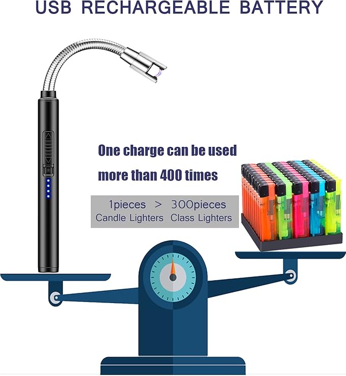 - Rechargeable lighter has LED power display friendly design reminds you to charge in time! Arc electronic lighter is equal to 300 disposable lighters, no butane, fluid, gas, flame.