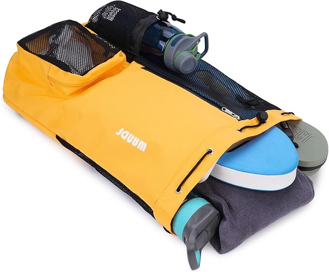 WANDF Swim Bag Mesh Drawstring Backpack with Wet Pocket for Swimming, Gym, and Workout Gear