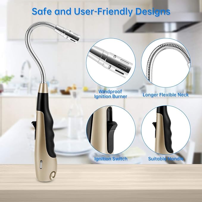 - Flexible Long Neck and 360° Rotation: The lighter with a 360° flexible long neck protects you from burning your hand and can be rotated or bend to different angles at will. You can use it in various scenarios like BBQ, grill, fireplace, etc
