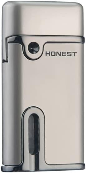 Slim Torch Butane Lighter with Red Flame, Refillable Butane Cigar Lighter, Fuel Visible Window Windproof Lighter for Grill BBQ Camping (Butane NOT Included) (Sliver)