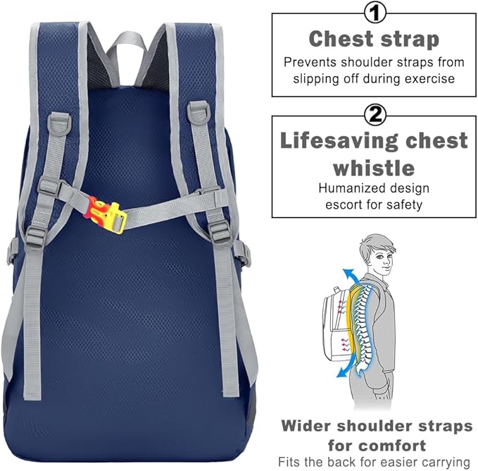 • Unique Design: One main zipper compartment, three front pockets and two side pockets keep your things organized and kept separate. Heavy-duty SBS two-way metal zipper for long-term use. A zippered lid keeps water out. The whistle buckle of the chest strap and the reflective strips on the surface of the backpack greatly increase the practicality of travel.