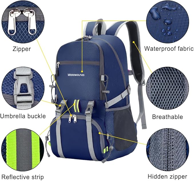 WEREWOLVES 20/35L Lightweight Hiking Backpack, Ultralight Water Resistant Packable Daypack for Women Men
