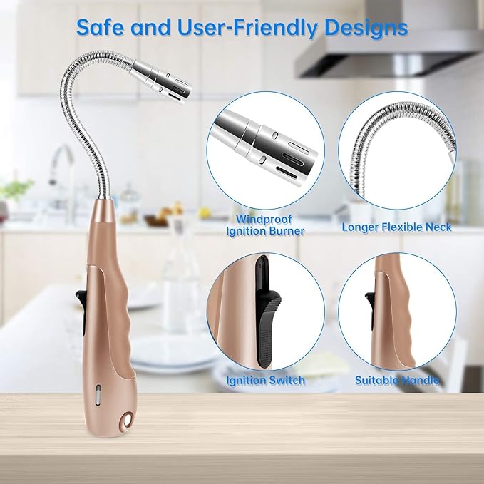 - Flexible Long Neck and 360° Rotation: The lighter with a 360° flexible long neck protects you from burning your hand and can be rotated or bend to different angles at will. You can use it in various scenarios like BBQ, grill, fireplace, etc
