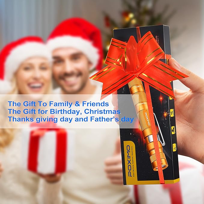Gifts for Men Women POXIMO EDC Multitool 5-in-1 Tactical Survival Gear with Flashlight, Lighter(No Fuel), Glass Breaker, Whistle, Cutter, Compass, A Cool Birthday Gift, Nice Camping Tool Kit