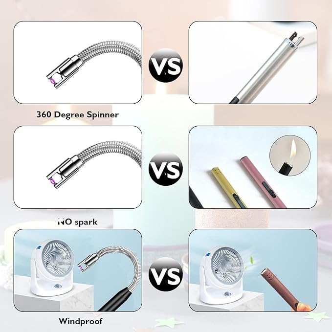 - ♚【Wind & Splash Proof】The wind and splash-proof design will protect the electric pulse from being blown out by strong wind or wet weather. Vanpro lighter is a perfect tool for lighting under bad weather.No flame, no butane, no hassle. Compared with other lighters, Our candle lighter will make less noise