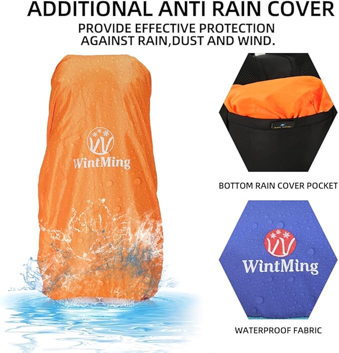 - Waterproof & Stable: Camping backpack is made of high-density polyester material, which tear-resistant, water-resistant and anti-abrasion, this men hiking backpack equipped with a rain cove on the bottom pocket, no fear of heavy rain, keep everything dry.