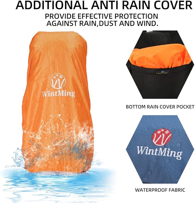 - Waterproof & Stable: Camping backpack is made of high-density polyester material, which tear-resistant, water-resistant and anti-abrasion, this men hiking backpack equipped with a rain cove on the bottom pocket, no fear of heavy rain, keep everything dry.